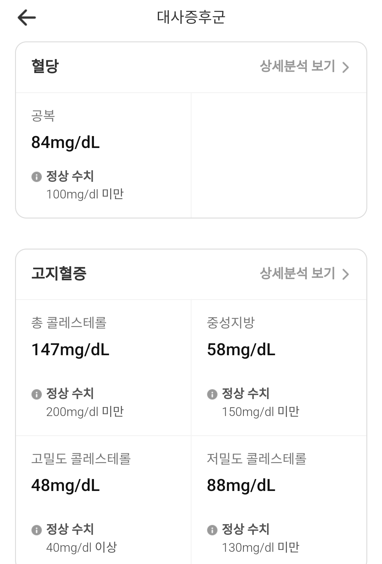 콜레스테롤 수치도 완전 정상범위로 돌아왔고